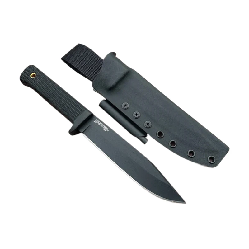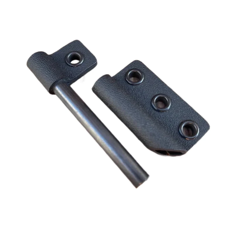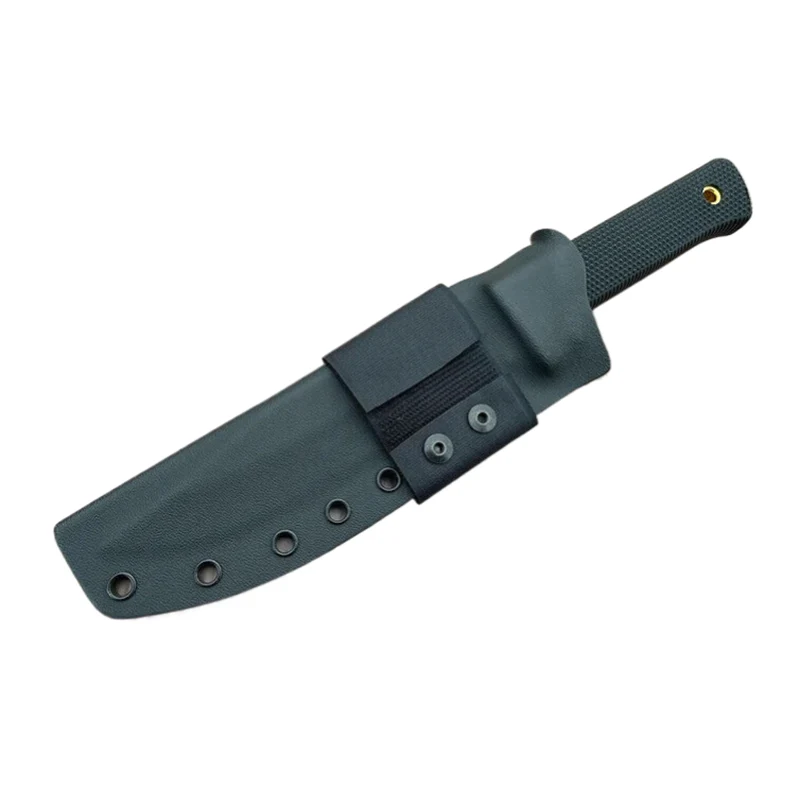 Vagina cultri cinguli praesto est in figura taco (foraculi ab una parte) et figura subcinericii (foraculi utrinque). Frigidum Chalybem apponere ad cingulum in via classica, vel perpendiculariter, clientes mei multi-Lok eligere solent. Si paulo inferius cultrum portare vis, corrigo nylon lorum cum Kydex possessore. Velcres etiam cultrum trans cingulum portari idoneus est. Velcro etiam solutio practica ad cultrum lorum manticae applicandum. Praeter Vagina Kydex, ignem ferreum possessorem apponere possum, optione ferro igne (80mm longo).